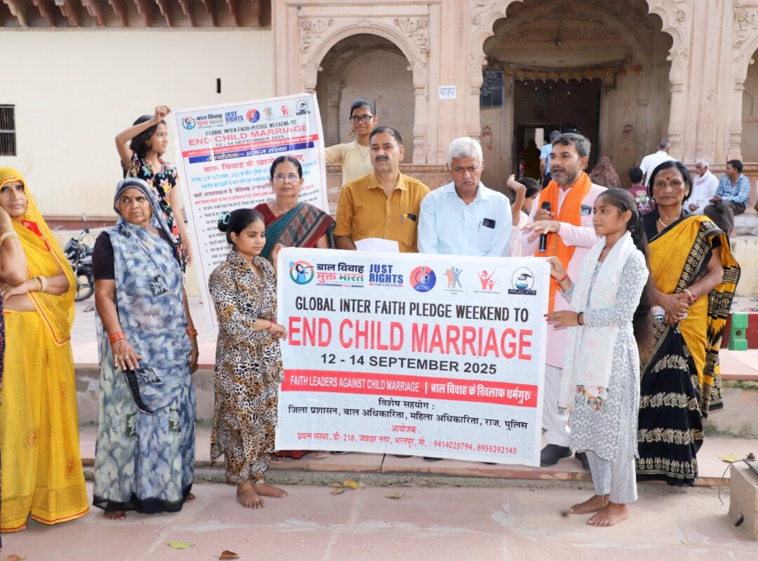 Prayatn Sanstha, under Access to Justice project, supported by Kailash Satyarthi Children’s Foundation, organized a three-day campaign from 12th to 14th September 2025 during the Global Interfaith Weekend to End Child Marriage. The campaign aimed to mobilize faith leaders and community members to raise awareness against child marriages in Nadbai and Sewar blocks in Bharatpur, Rajasthan.