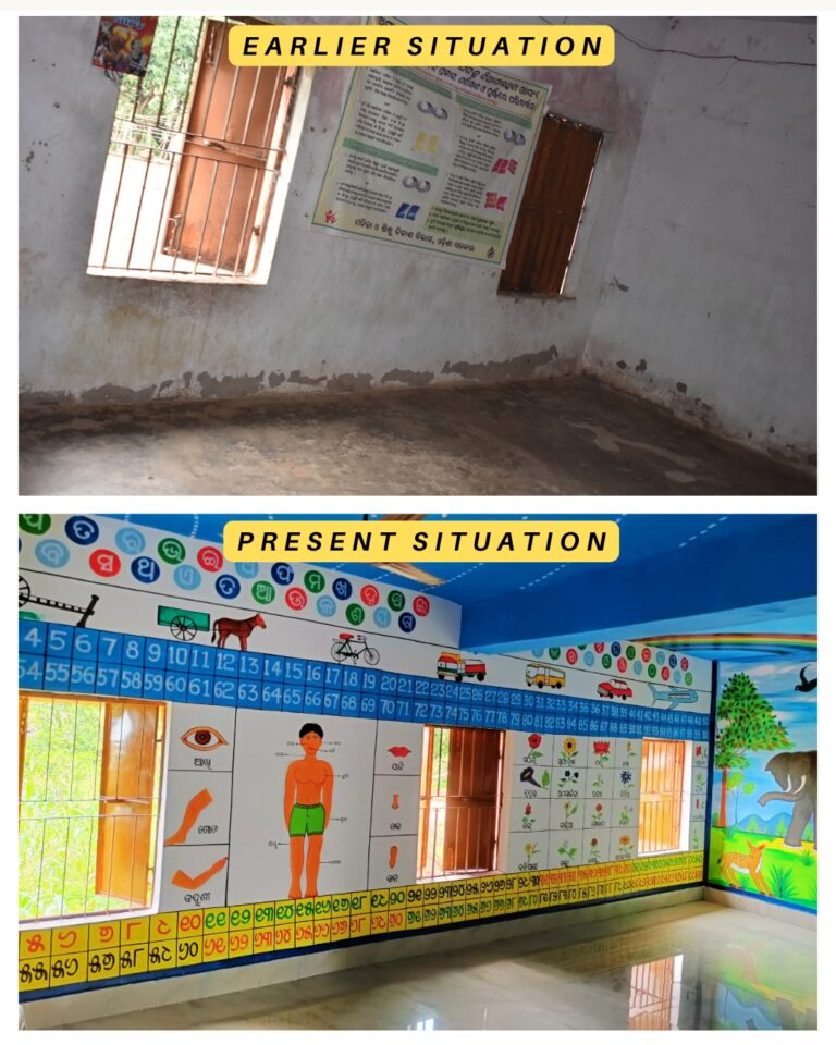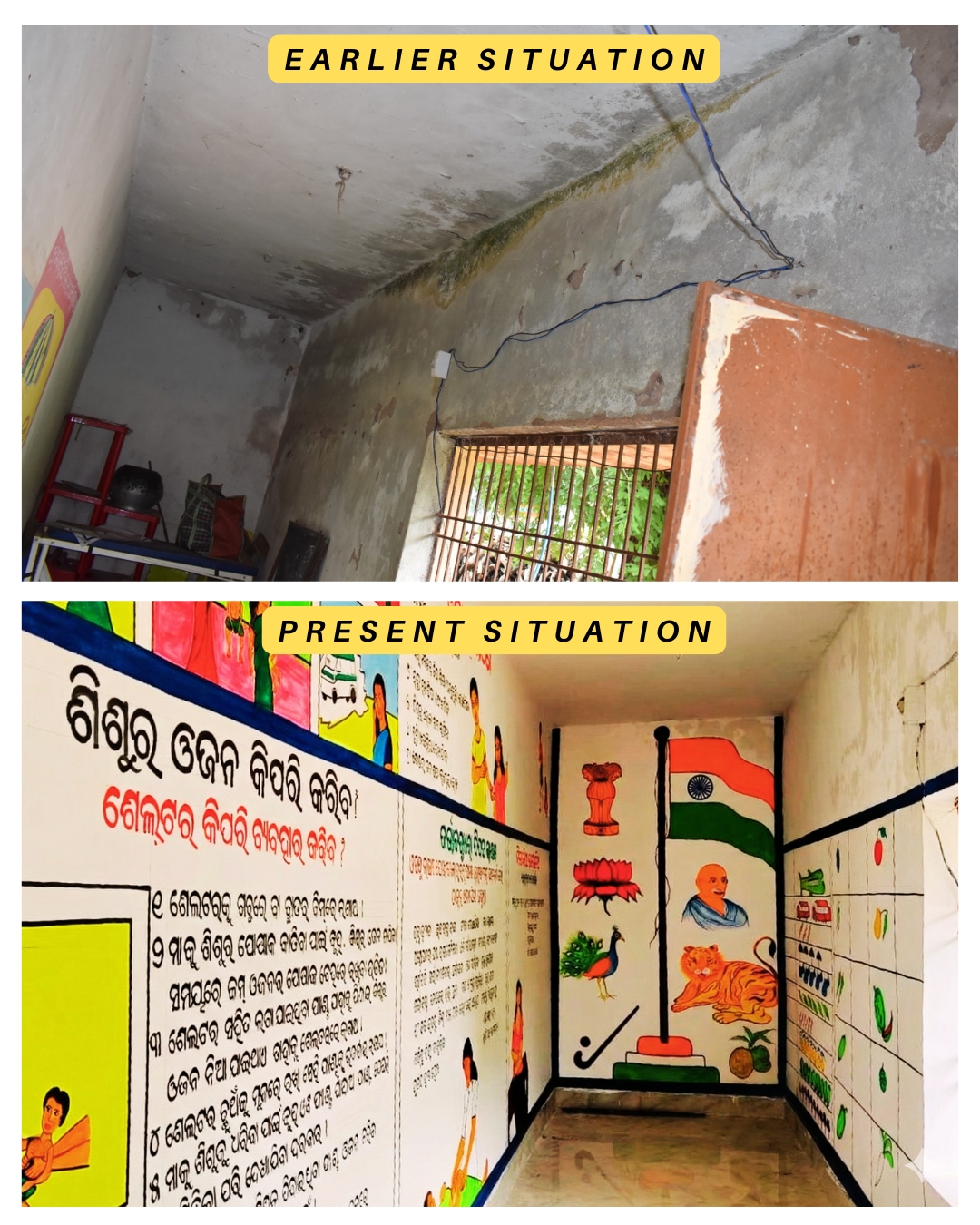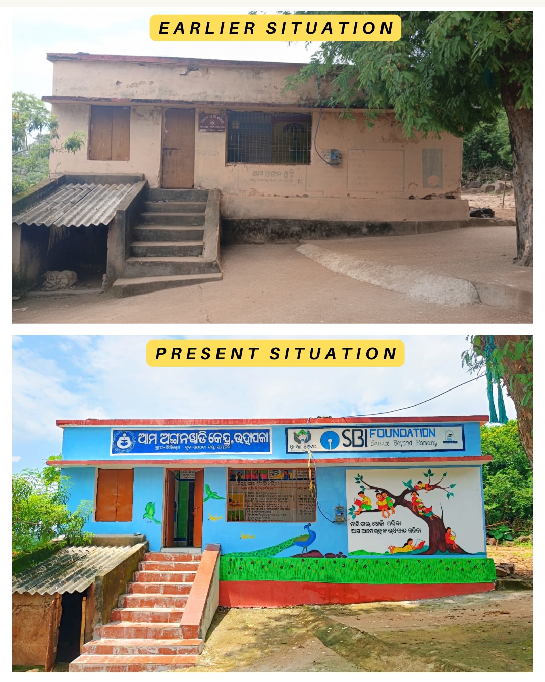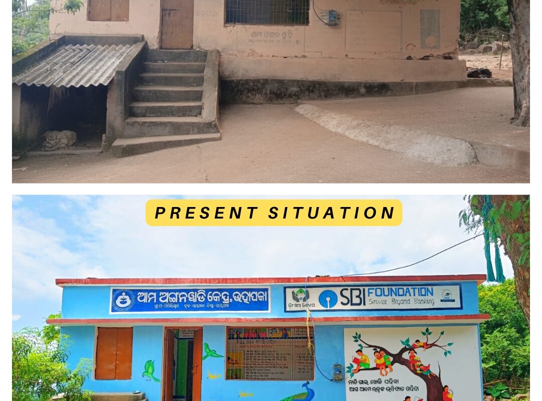 In the remote tribal village of Uhapaka, Rayagada Odisha, the local Anganwadi Centre was once a place of worry for parents and children alike. The building had a leaking roof, broken windows, toilets and unsafe drinking water. Learning often happened under trees and during the monsoon, the centre became completely unusable. Children missed out on early education and essential nutrition, while parents constantly worried about their safety and wellbeing.