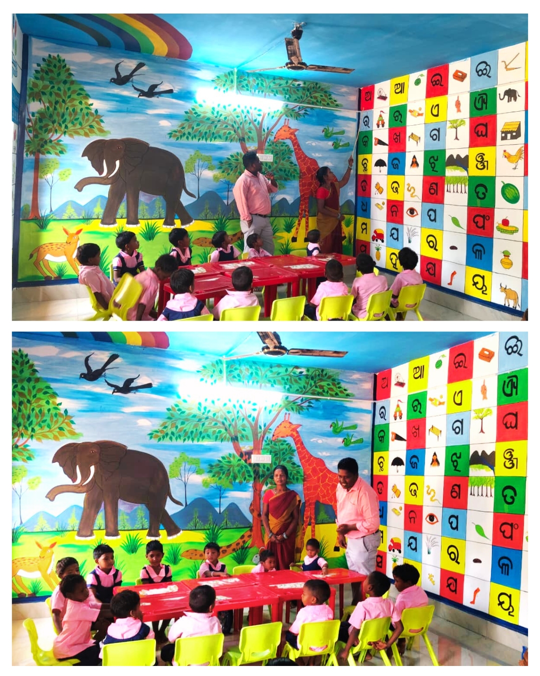 Anganwadi worker Ms. Shantimani Kandagari shares: Earlier, children would avoid the centre when it rained. Now, with safe spaces and colorful walls, they come every day excited to learn and play it makes us so happy to see them.