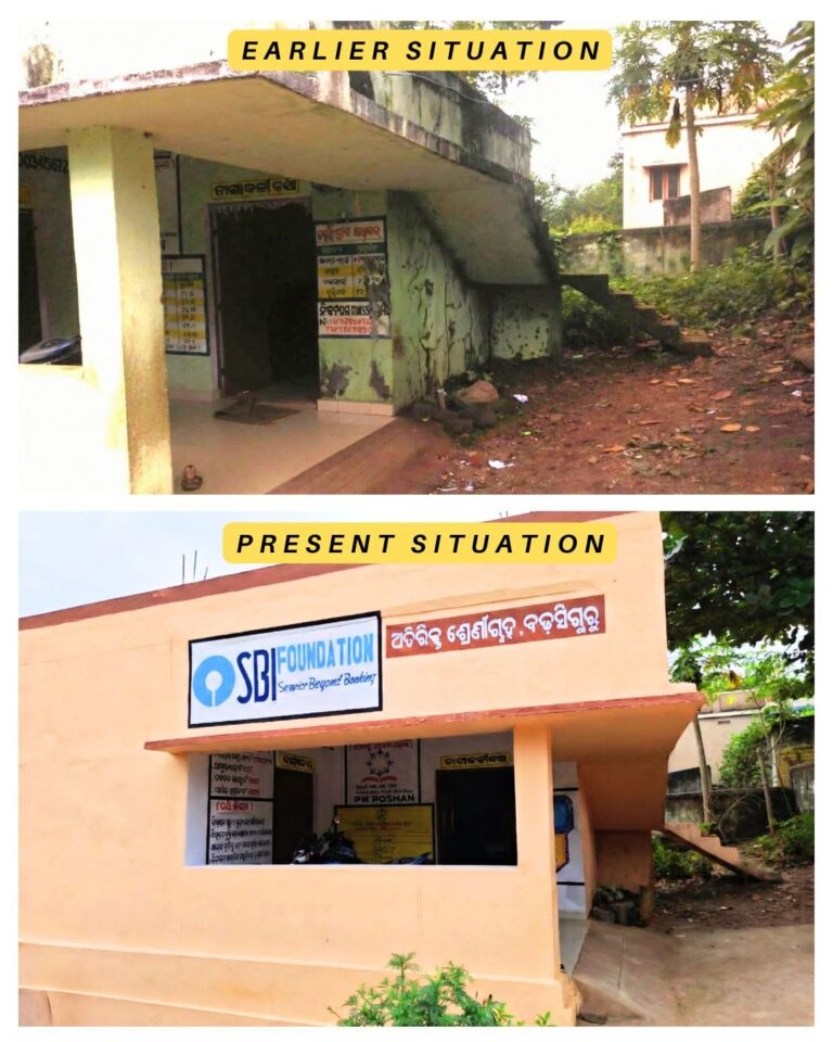 Everything changed when Prayatn Sanstha implemented the SBI Gram Seva Project in collaboration with SBI Foundation. Badasiguru Government Primary School was one of five centres renovated under the intervention. The project focused on improving essential village infrastructure, including educational facilities, to strengthen the overall wellbeing of communities in remote villages through targeted support.